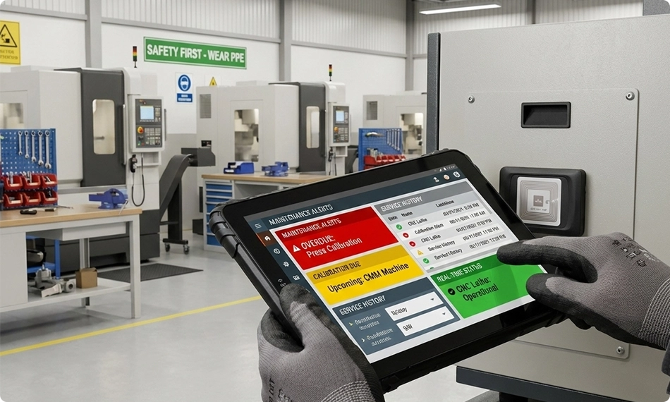 Automated check-in/check-out of calibrated tools, specialized fixtures, and safety equipment across maintenance departments and production floors, reducing loss and downtime.