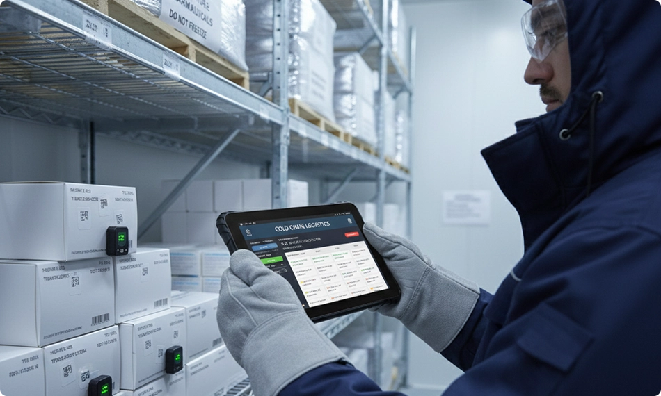 Monitoring and verifying temperature-controlled shipments in pharmaceutical and food distribution, with RFID tablets operating reliably in refrigerated environments and cold chain facilities.