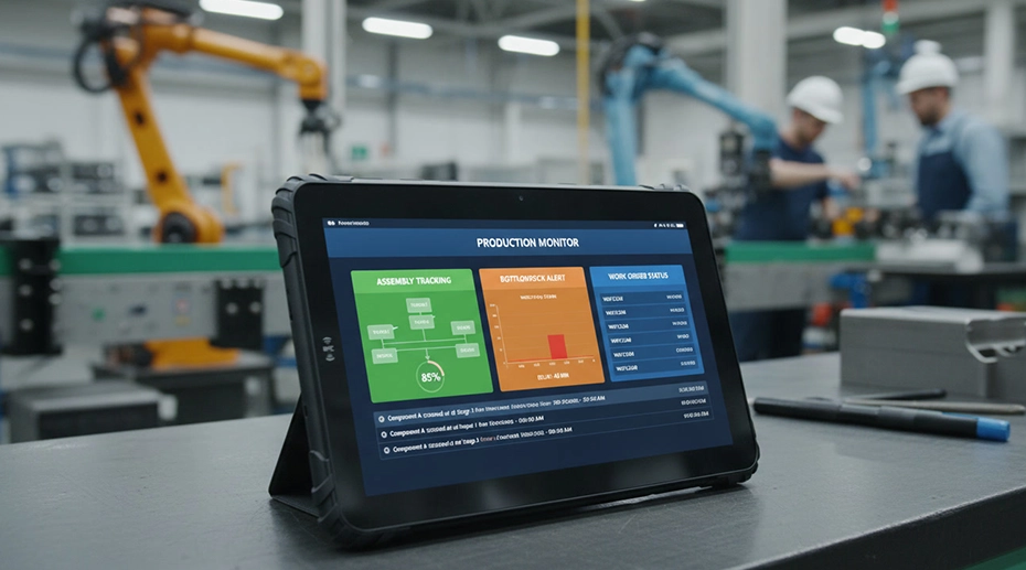 Work-in-Progress Visibility: Track components through assembly stages, monitor production bottlenecks, and maintain accurate work order status.