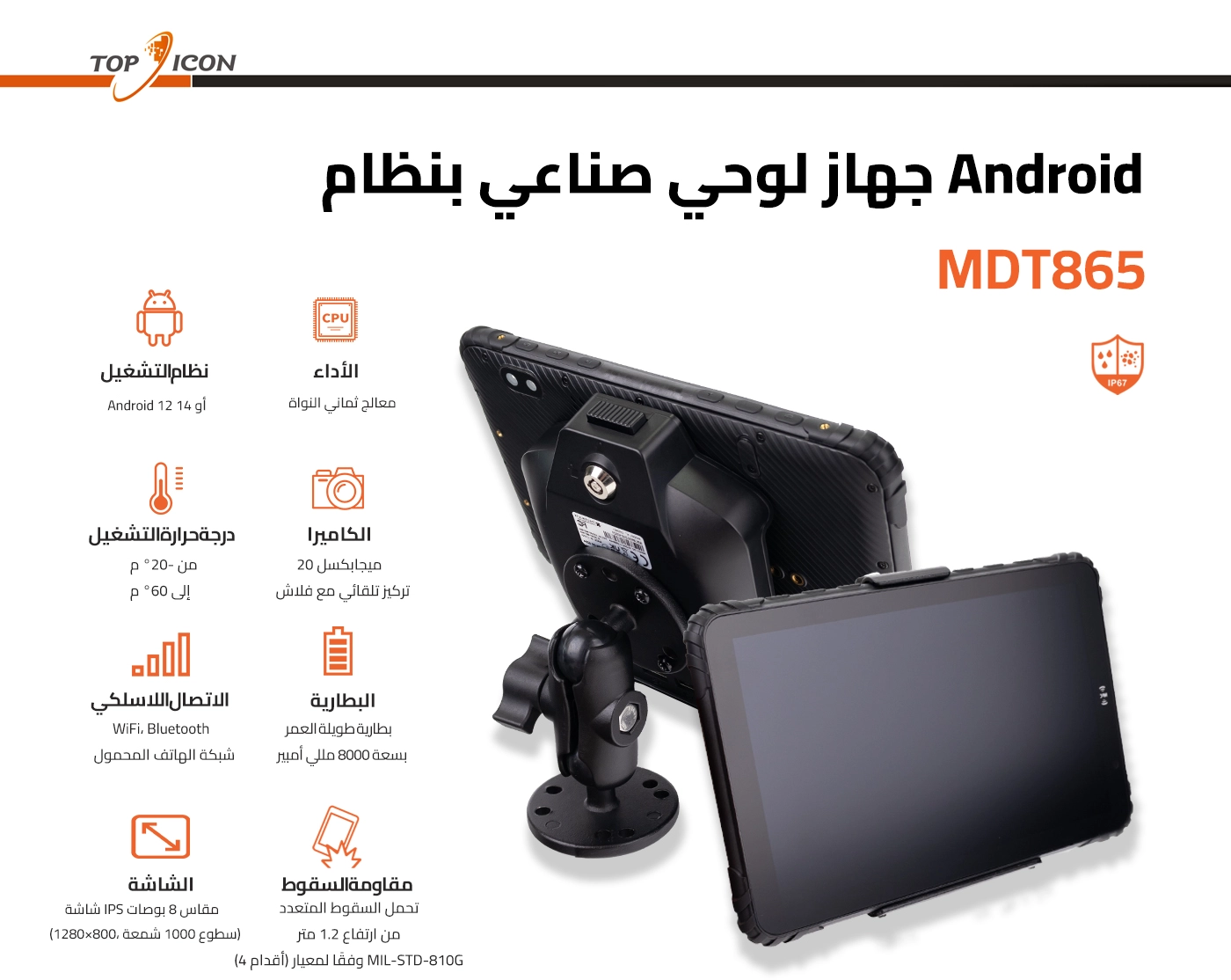 جهاز لوحي متين يعمل بنظام أندرويد مقاس 8 بوصات