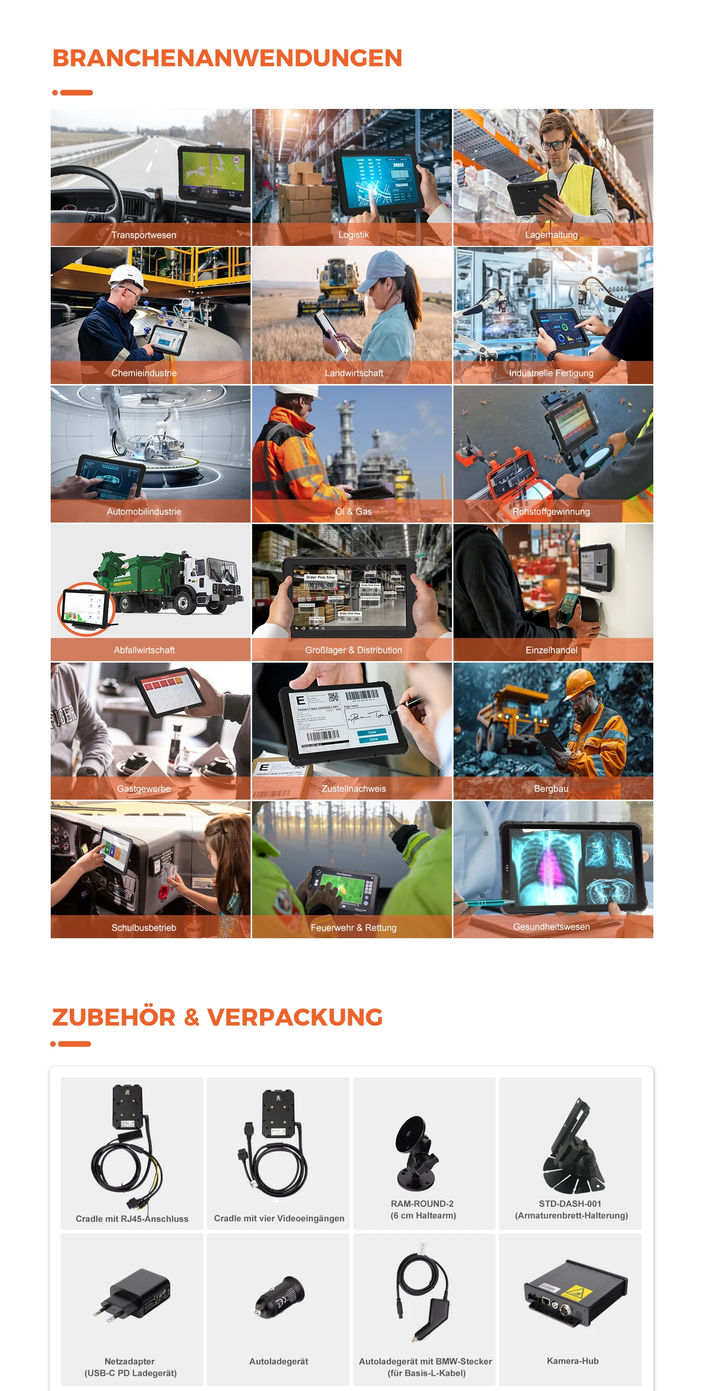 1 Haupteinheit und 1 Dockingstation, 1 RAM-Halterung, 1 USB-Kabel, 1 NFC-Karte