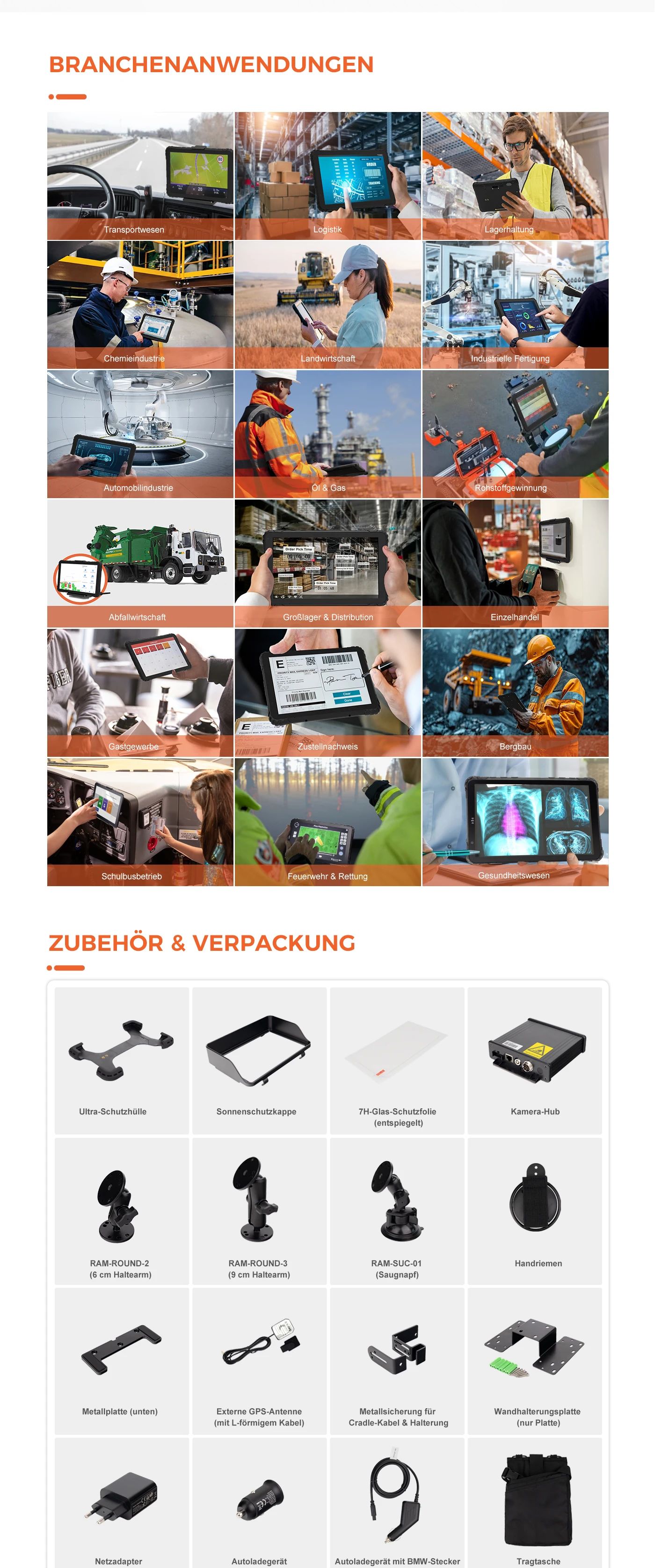 1pc Hauptgerät und 1pc Halterung (Fahrzeughalterung oder Desktop-Dockstation), 1pc RAM Mount, 1pc USB-Kabel, 1pcs Hochleistungs-Autoladegerät, 1pc NFC-Karte, 1pcs Hochleistungs-Netzadapter, 1pcs Typ-C-Kabel für Netzadapter