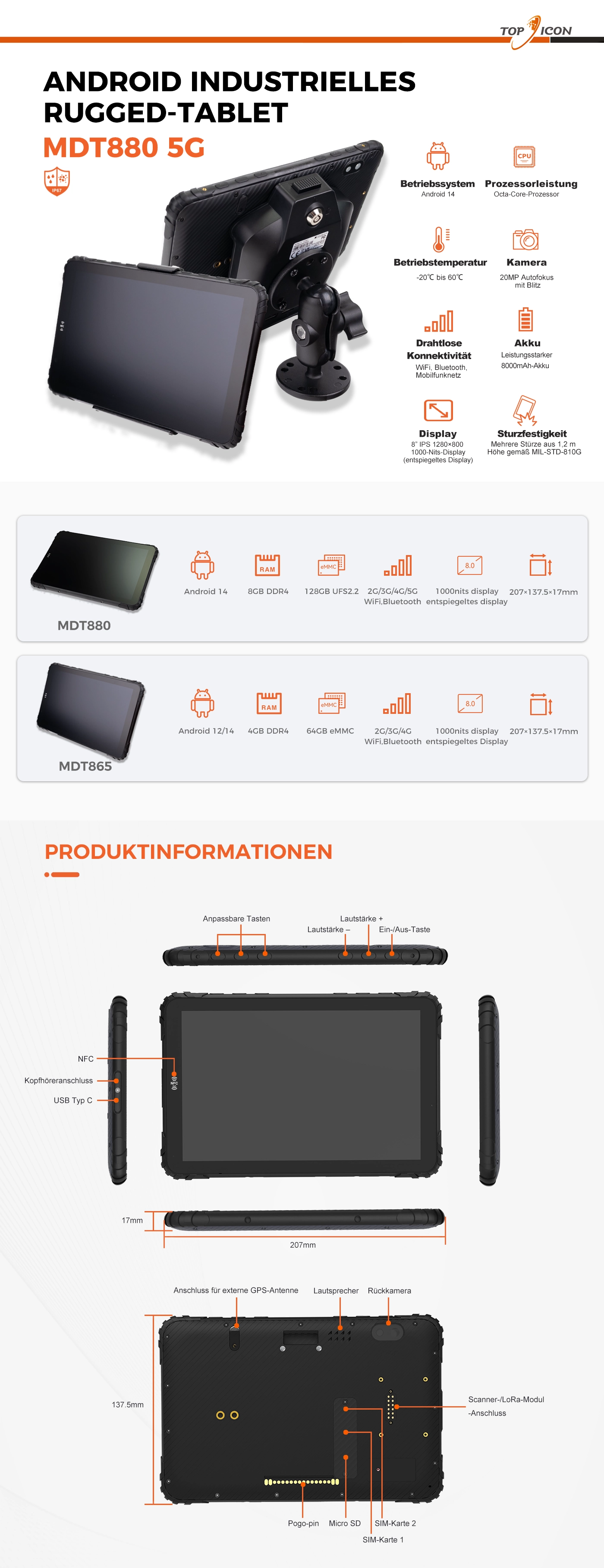 Robustes 8-Zoll-Android-Tablet