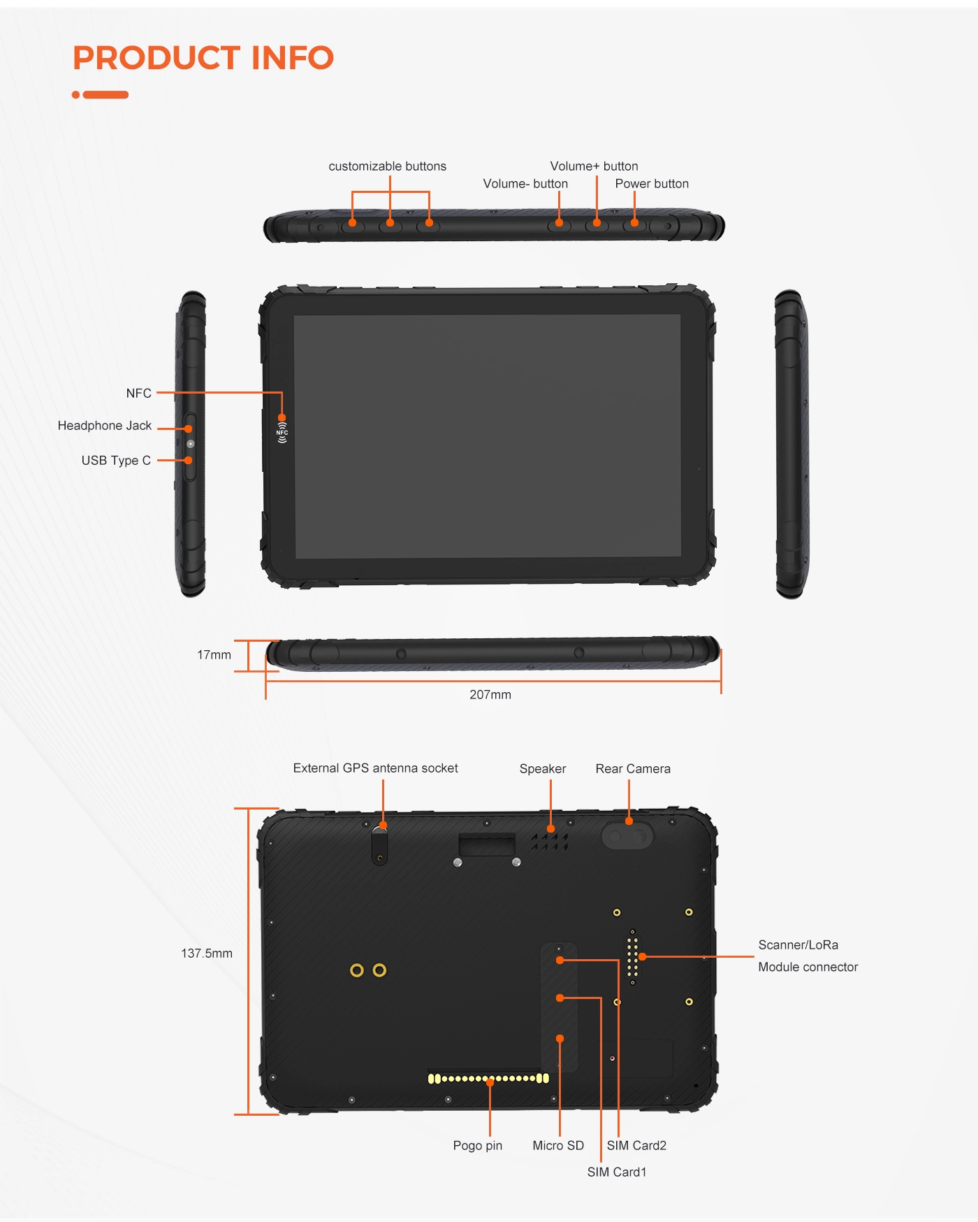 Type C USB Connector: USB2.0 connection and power chargingPago pins: Support serial port, USB,12V/24V input, iqnition, eepromSlM card slot: Yes two nano SlM