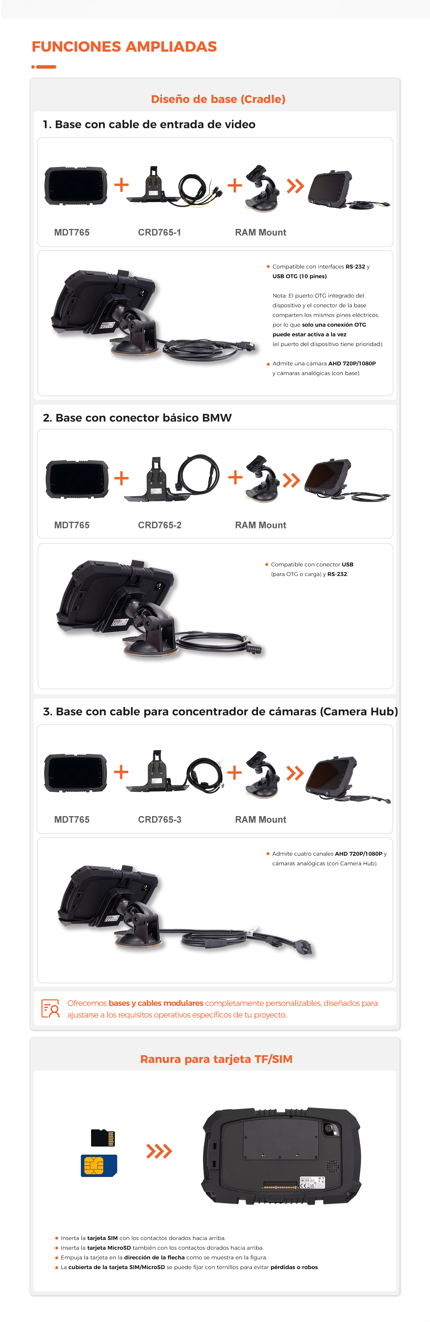 La MDT765 es una tableta MDT popular para la gestión de flotas de camiones. Los conductores la utilizan para navegación, rutas, despacho, firmas electrónicas, comprobantes de entrega, gestión de pedidos, mantenimiento de vehículos, gestión del consumo de combustible y registro de bitácora. Los operadores de flotas la utilizan para ELD y órdenes de trabajo electrónicas, ampliando el flujo de trabajo digital a vehículos móviles y mejorando la productividad.