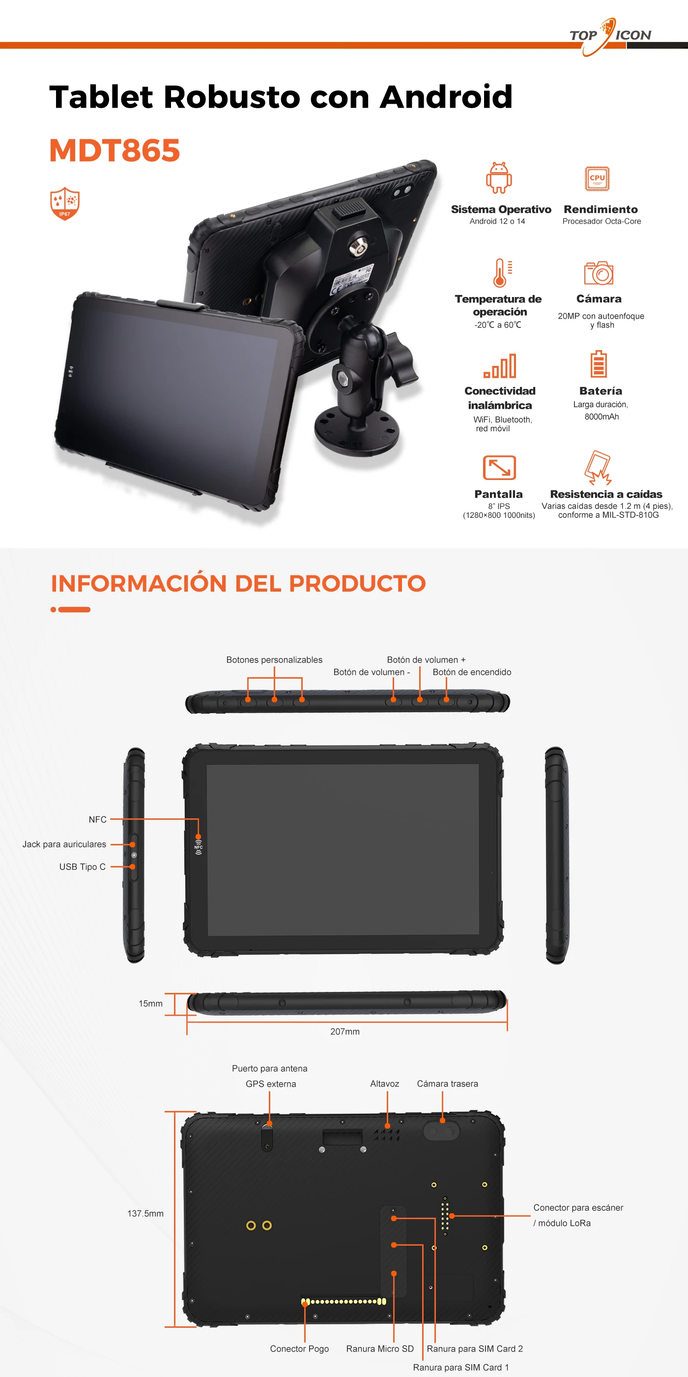 Tableta robusta Android de 8"