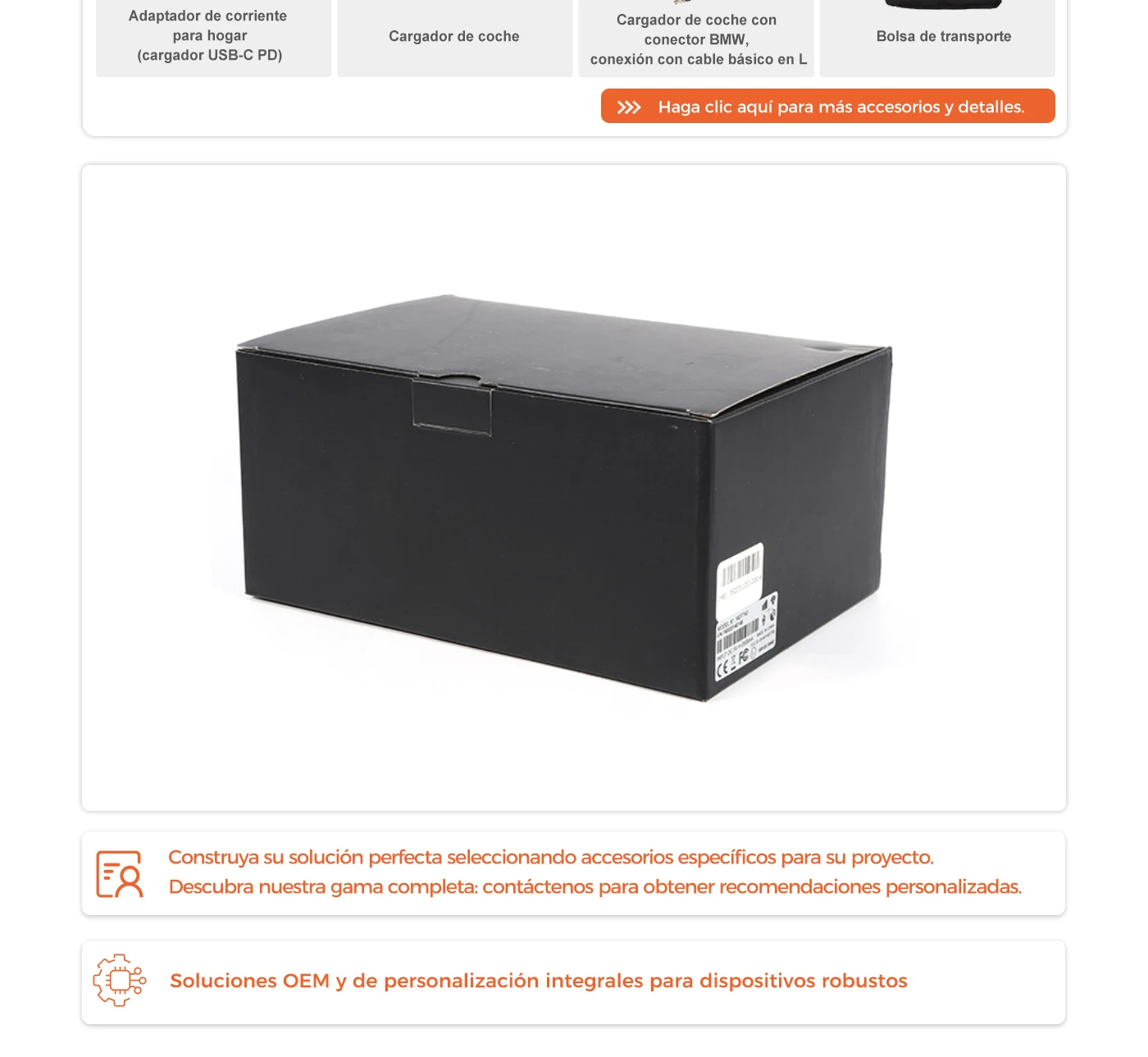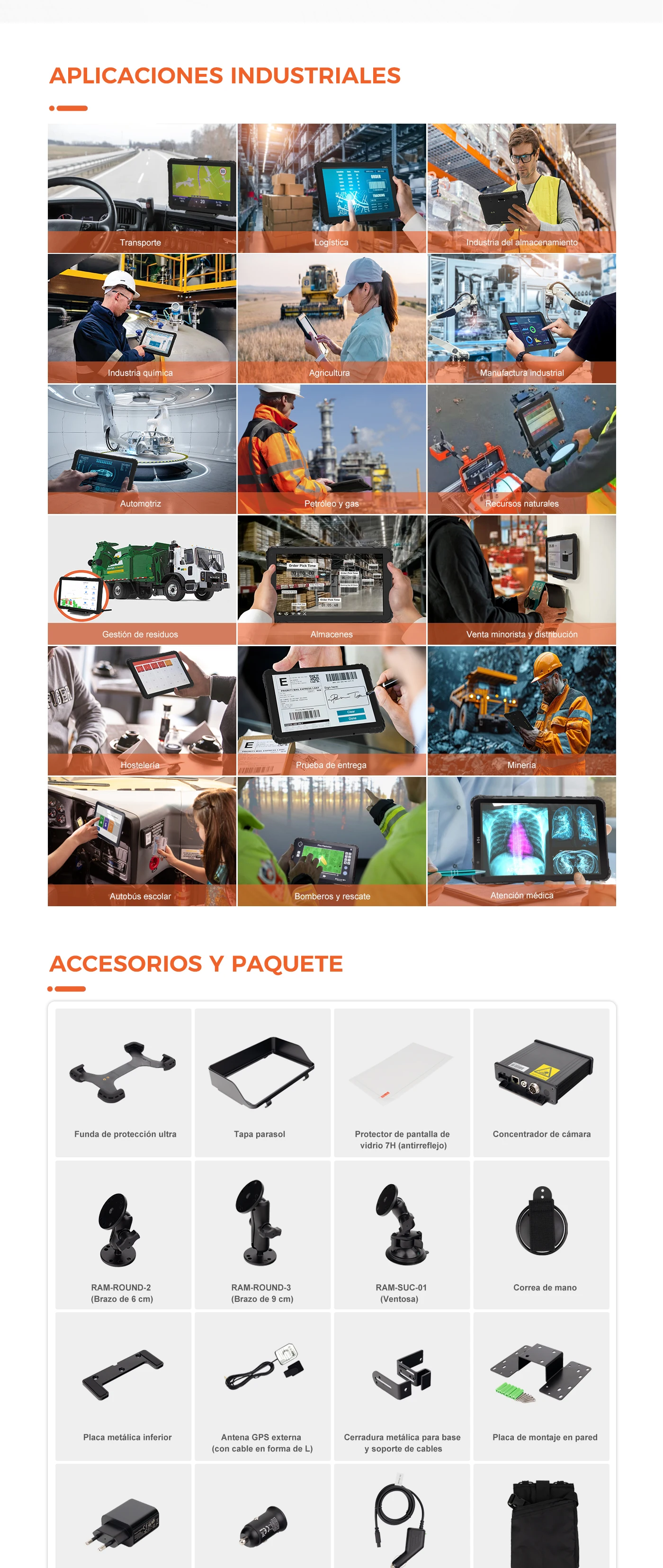 1 unidad principal y 1 base (base para vehículo o estación de acoplamiento de escritorio). 1 soporte de RAM, 1 cable USB, 1 cargador de coche de alta potencia, 1 tarjeta NFC, 1 adaptador doméstico de alta potencia, 1 cable tipo C para adaptador doméstico.