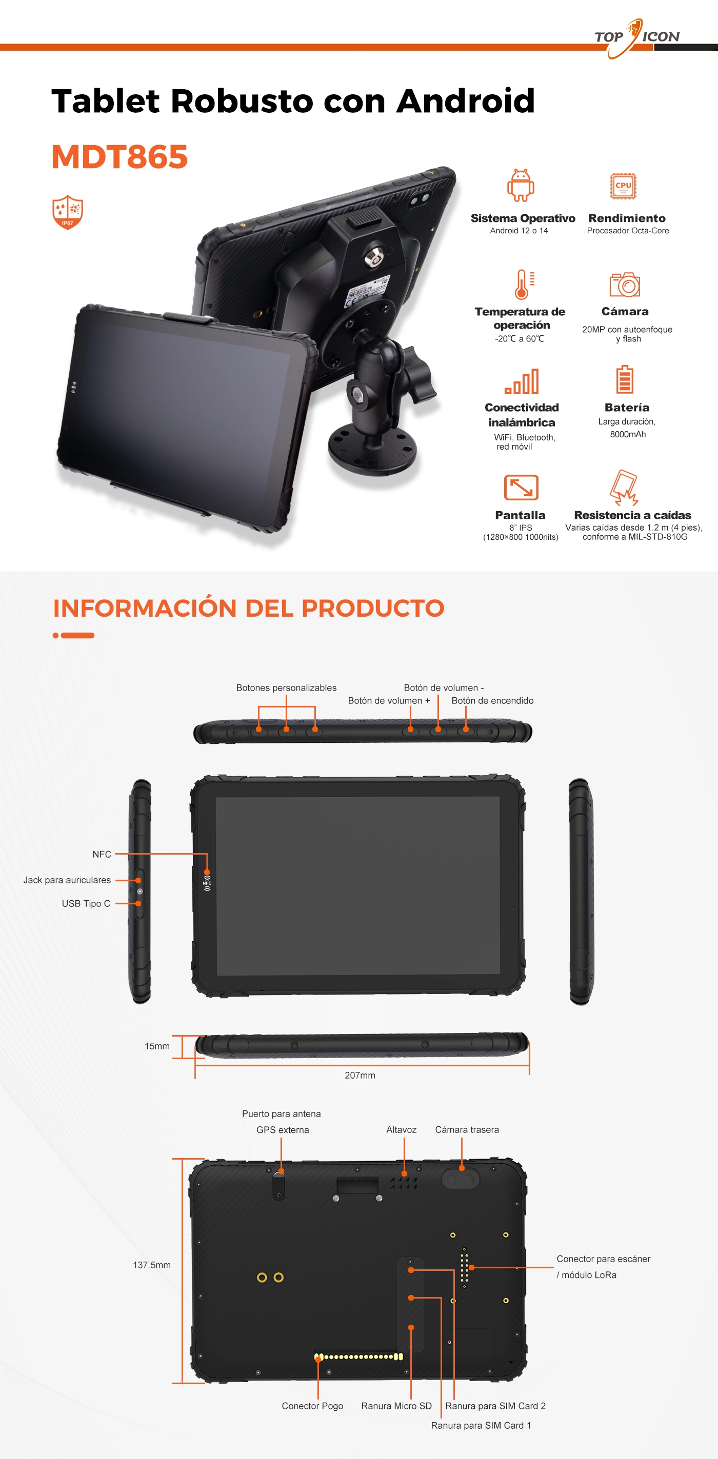 Conector USB tipo C: Conexión USB 2.0 y cargaPines de pago: Compatible con puerto serie, USB, entrada de 12 V/24 V, ignition, EEPROMRanura para tarjeta SIM: Dos tarjetas SIM nano
