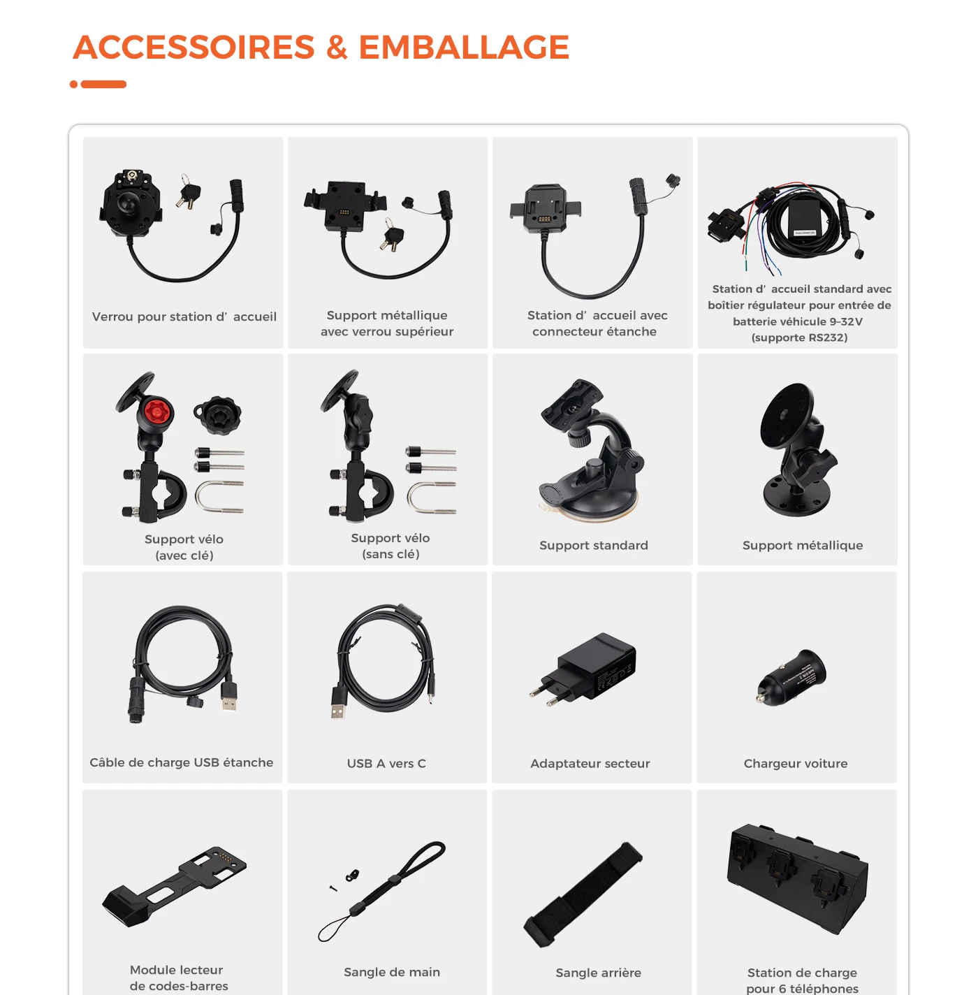 1 unité principale, 1 support de base, 1 câble de type C, 1 chargeur de voiture, 1 kit de vis, 1 carte NFC