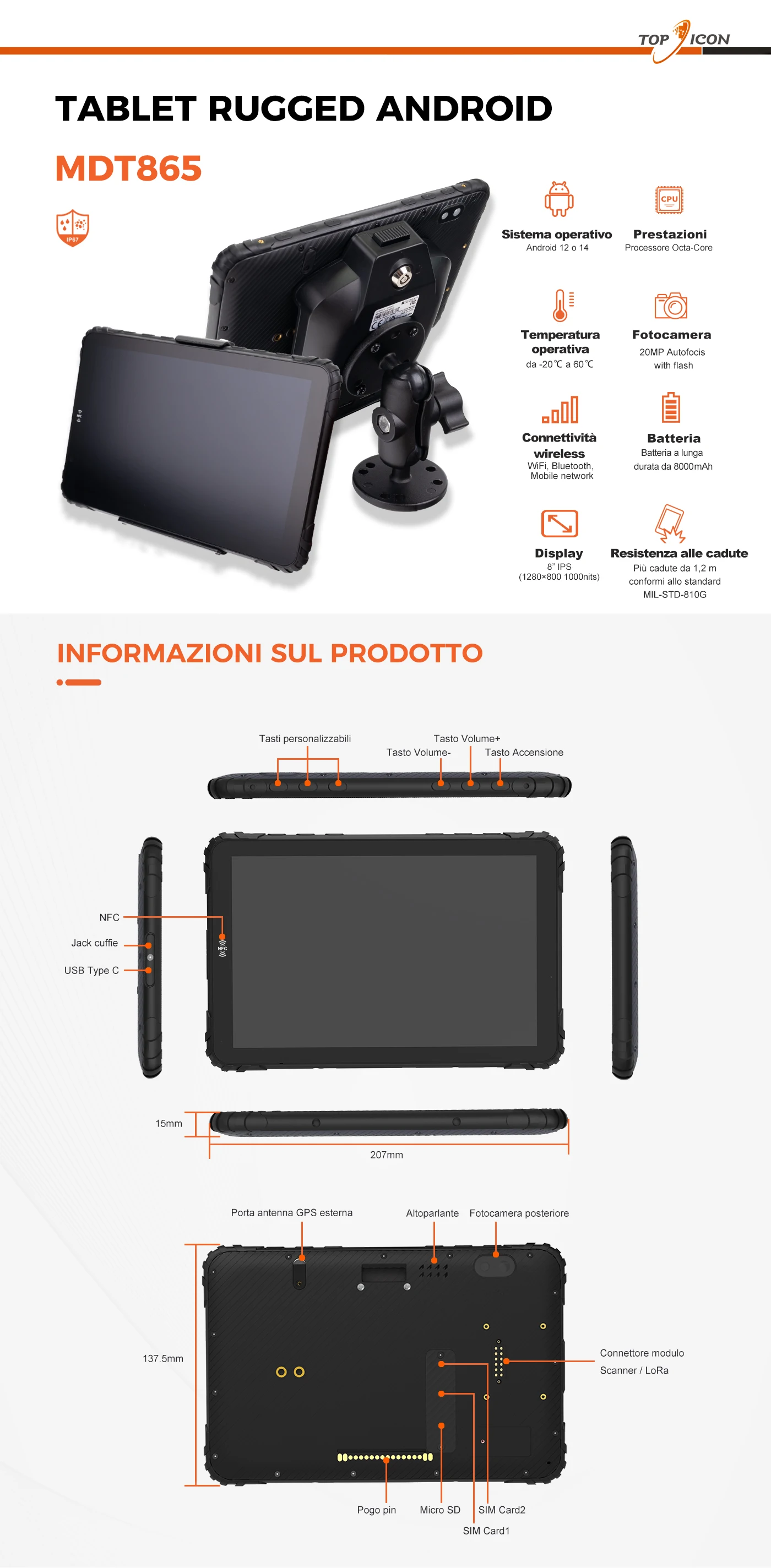 Tablet Android robusto da 8"