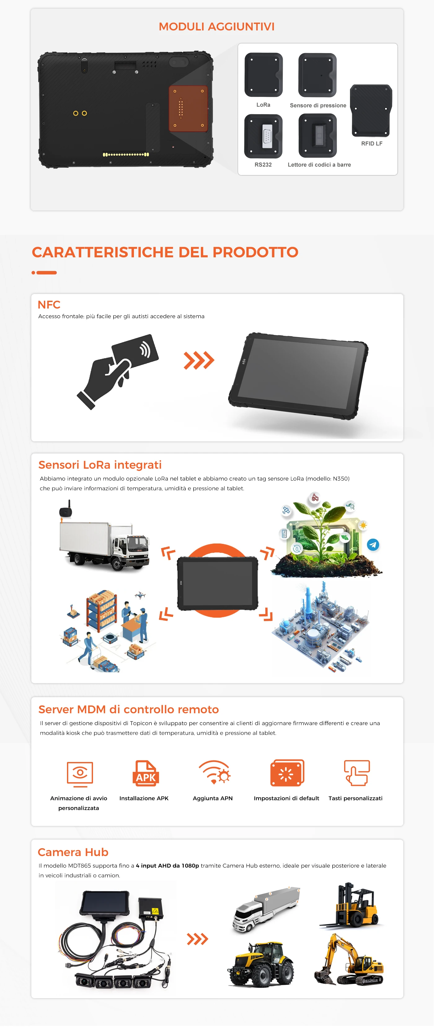 Connettore USB di tipo C: connessione USB 2.0 e ricaricaPin di paging: supporta porta seriale, USB, ingresso 12V/24V, sincronizzazione, EEPROMSlot per scheda SIM: sì, due nano SIM