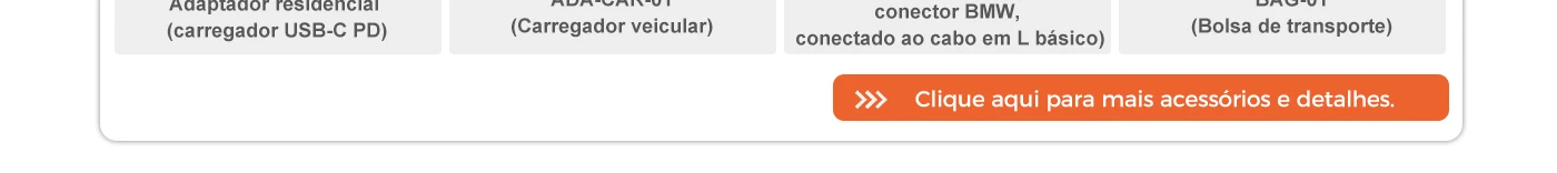 1 unidade principal e 1 base (base para veículo ou estação de acoplamento de secretária), 1 suporte de RAM, 1 cabo USB, 1 carregador de isqueiro de alta potência, 1 cartão NFC, 1 adaptador residencial de alta potência, 1 cabo tipo C para adaptador residencial