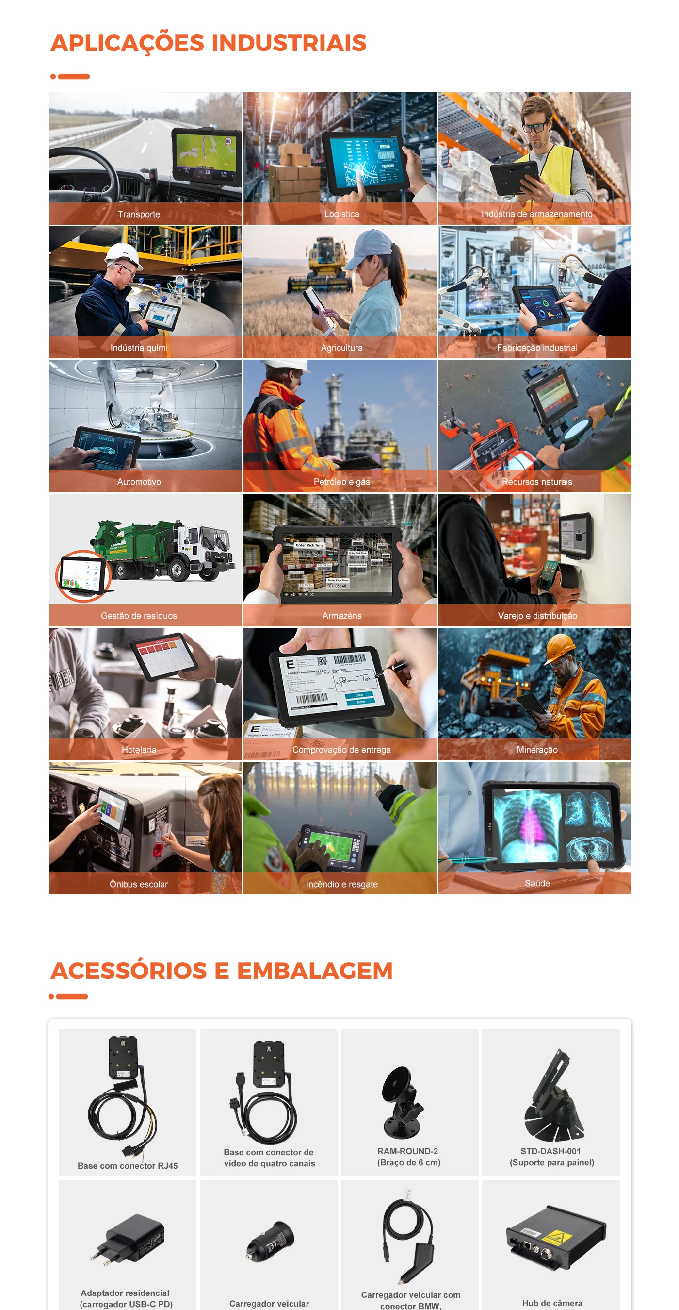 Conector USB Tipo C: Ligação USB 2.0 e carregamentoPinos Pogo: Suporta porta série, USB, entrada de 12 V, ignição, eepromRanhura para cartão SIM: Sim
