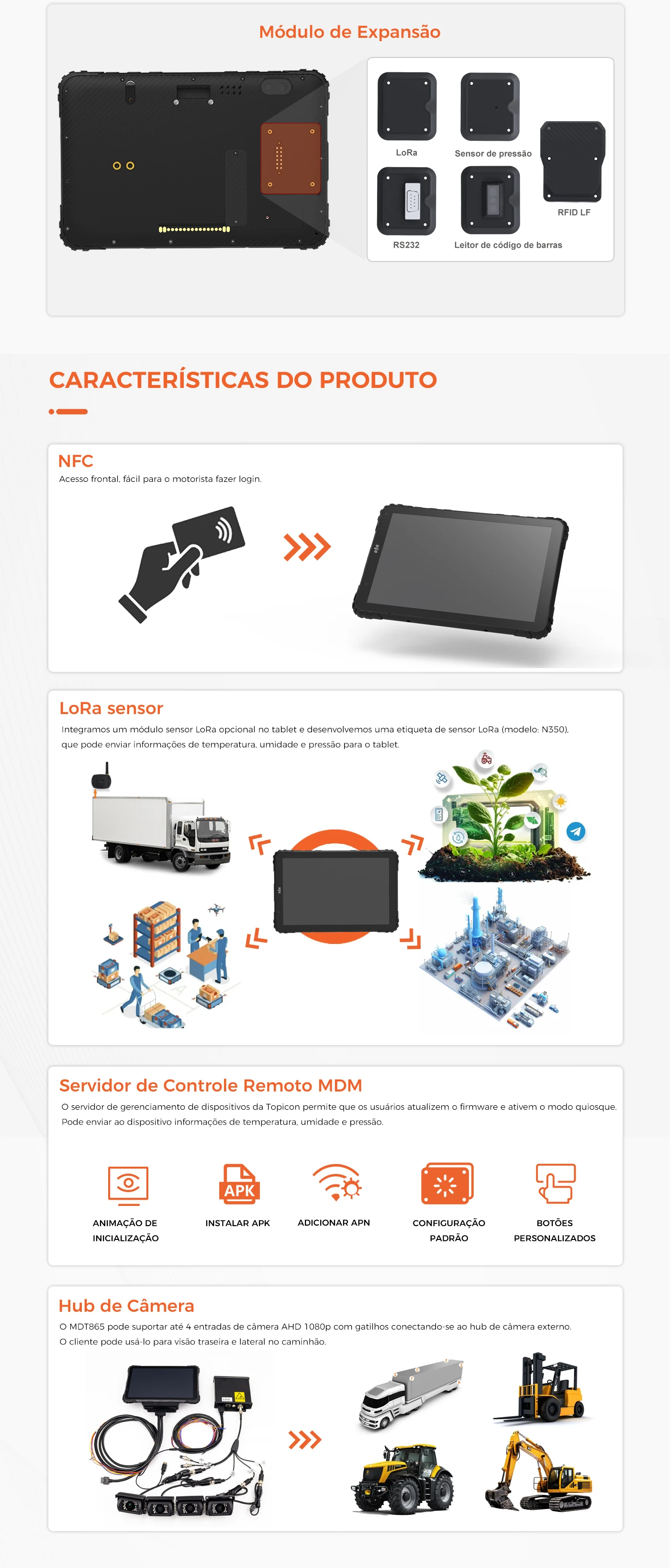 Conector USB Tipo C: Ligação USB 2.0 e carregamentoPinos Pagos: Suporta porta série, USB, entrada 12V/24V, iqnition, eepromRanhura para cartão SlM: Sim, dois nano SlM